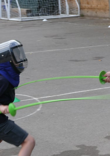 Allez! Children use safe rubber ended swords wearing masks and taught the safe technique of Fencing before battling in duels. Who will lunge their way to victory?