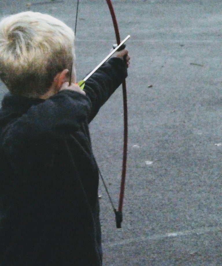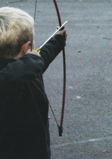 We use foam ended arrows shooting from a safe distance with children wearing a protective mask. Who can dodge the oncoming arrows?